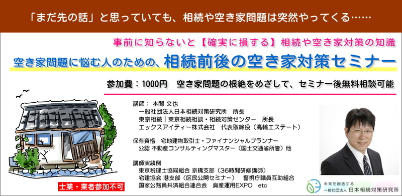 テーマ :  空き家問題に悩む人のための、相続前後の空き家対策セミナー