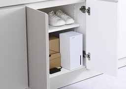 幅を抑えたスリム設計により、下駄箱やクローゼットなどの限られたスペースにも設置が可能です。使用場所を選ばず、気になる空間をピンポイントで湿気対策できます。