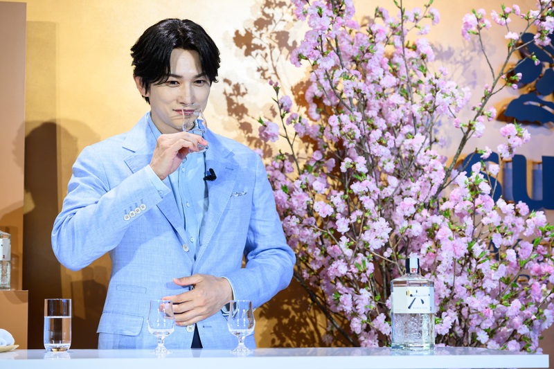 続いて、「ROKU〈六〉」のアンバサダーに就任した町田さんに、「ROKU〈六〉」ジンソーダをつくっていただきました。町田さんは「意外と簡単ですね。今回塩抜きの桜の花を乗せましたが、少し何かを足すのもいいなと思うので、自宅で色々お試しいただきたい。夏はすだち、秋は生姜、冬は柚子も合いそう。ソーダで割るとより香りが広がって美味しいですね」とコメントされました。