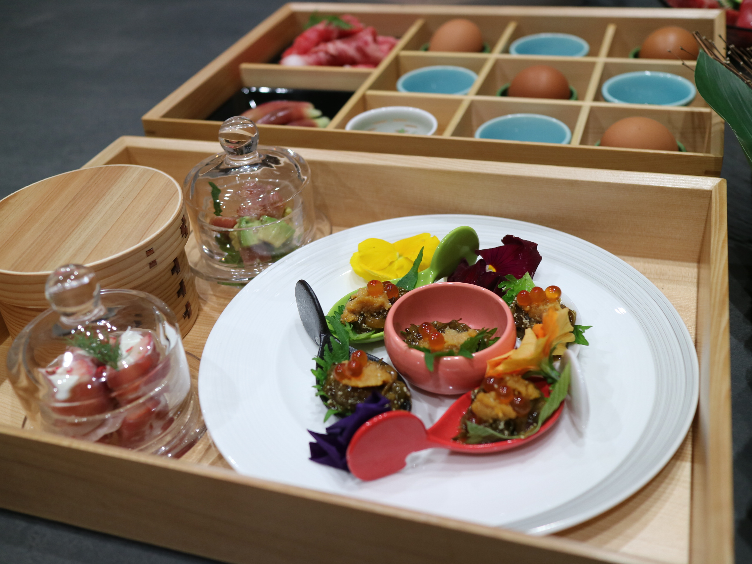 食事は奥松島の自然と季節を反映した内容となっており、地元の食材を活かしたメニューを提供します。海と山に囲まれた奥松島ならではの食の魅力を体験として楽しむことができ、開放的な空間の中で味わうことで、より記憶に残る時間を演出します。