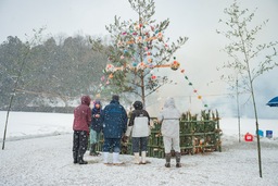 あわら市は写真家 tomosaki さんとともに、四季の魅力を連載でお届けしています。Vol.10 は“冬の祭りと祈り”。艶やかに舞う芸妓の姿、雪に包まれた神社と赤提灯の灯り、青空に伸びる梯子の上の勇姿、燃え上がる左義長の炎、そして真っ白な公園で弾む子どもたちの笑顔――厳しい寒さのなかに息づく、あわらの力強さとあたたかさを切り取りました。