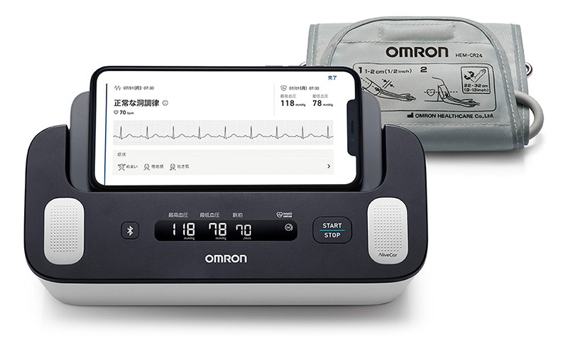 ・スマートフォンアプリ「OMRON Connect(オムロンコネクト)」で心電図波形を解析。「心房細動の可能性」など6パターンの解析結果をお知らせ