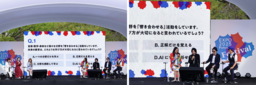 ステージでは大阪・関西万博の会場デザインプロデューサーを務めた藤本壮介さんとテーマ事業プロデュ