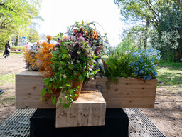 また、Food&Marketゾーン(わくわく池の冒険広場)では、会期中に国内外パビリオンで提供されていたメニューがもう一度味わえるキッチンカーやオフィシャルグッズなどの販売、解体された大屋根リングの端材を「万博から生まれた未来のカケラ」として生まれ変わったアート作品「Futures Piece Project」の展示を行いました。