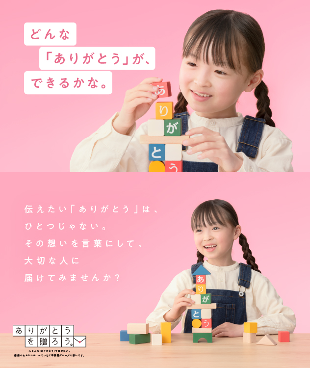 感謝を伝える大切さを広めたい。その想いから始まった活動が「ありがとうを贈ろう。」キャンペーンです。冠婚葬祭という仕事を通じて数えきれない「ありがとう」を見届けてきた平安閣グループのCSR活動です。