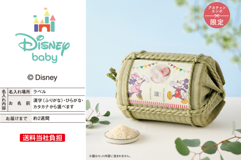 アカチャンホンポでしか買えない、ディズニー限定ギフト!赤ちゃんの体重と同じ重さのお米をお届けします。
