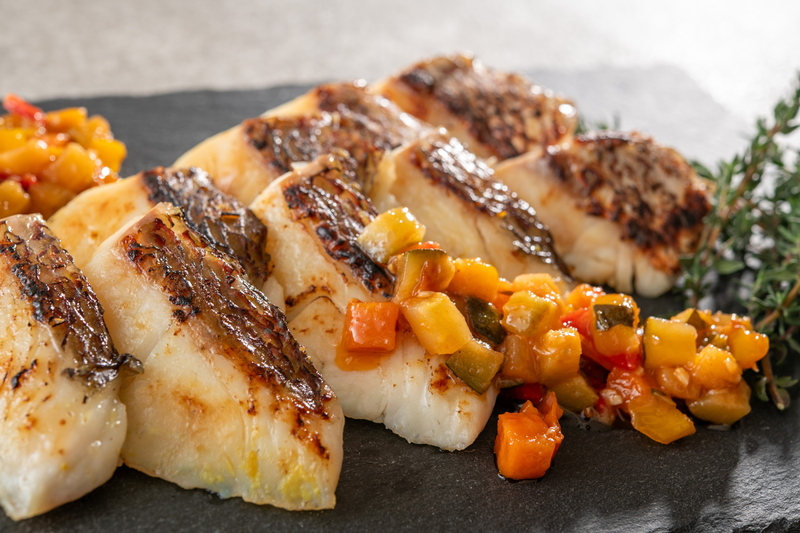 「白身魚の西京焼き カポナータのヴィネグレットソース」