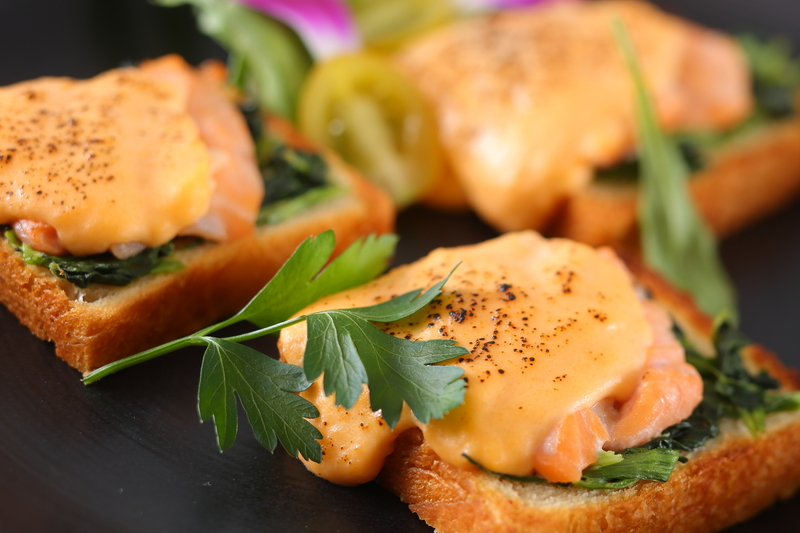 香ばしくローストしたデニッシュに、脂の乗ったサーモンと雲丹入りのベシャメルソースを。カリッとした食感と磯の香りが楽しめる贅沢な味わい。