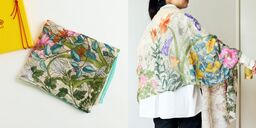 創業470余年、京友禅のきものを手掛ける老舗「千總」が新たな挑戦として生み出した、シルクシフォンの大判ストールです。「景年花鳥」の柄は、花々をモチーフにしたやさしい絵柄や、繊細な色の重なり、ぼかし染めの美しさが広がり、きものづくりで培われた技を一枚の絵画を纏うようにお楽しみいただけます。軽やかな質感で、日常の装いにはもちろん旅先や特別なシーンにもさりげない華やぎを添え、贈り物におすすめです。