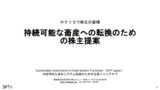 Sustainable Investment in Food-System Transition Japan(以下、SIFT Japan)は、株式会社ホクリヨウ(証券コード:1384、東証スタンダード)に対し、同社の定時株主総会においてアニマルウェルフェアの強化およびケージフリー飼養への移行に関する定款変更を求める株主提案を行いましたので、お知らせいたします。