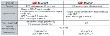 This new chipset builds on the proven receiver (ML7660) and transmitter (ML7661). The maximum power transfer is specified at 250mW, while peripheral components such as the switching MOSFETs required to supply power to the charging IC are built in. The result is a solution optimized for both mounting area and power transfer efficiency in the power class demanded by compact wearable devices.