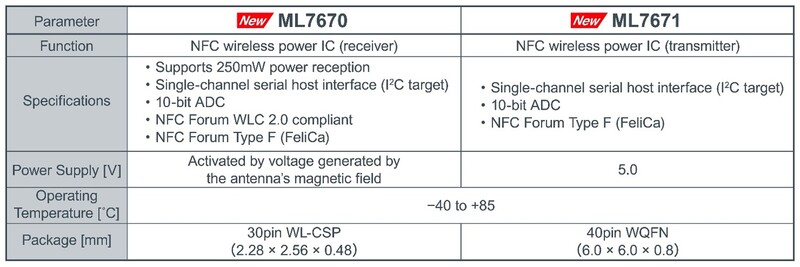 ROHM Co., Ltd. has developed a wireless power supply IC chipset consisting of the receiver (ML7670) and transmitter (ML7671) compatible with Near Field Communication (NFC) technology for compact wearables such as smart rings and smart bands.