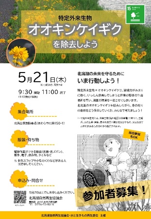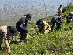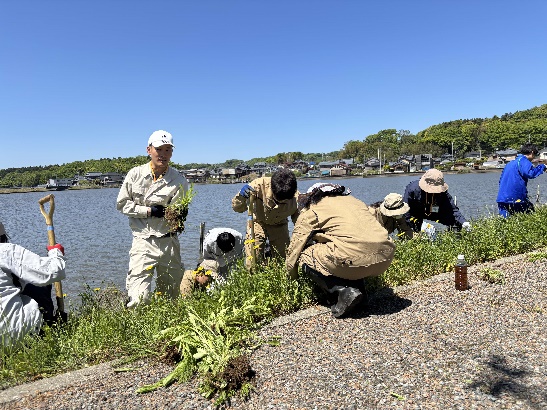 根絶目前/北潟湖で市民と学生が挑む「オオキンケイギク除去イベント」開催