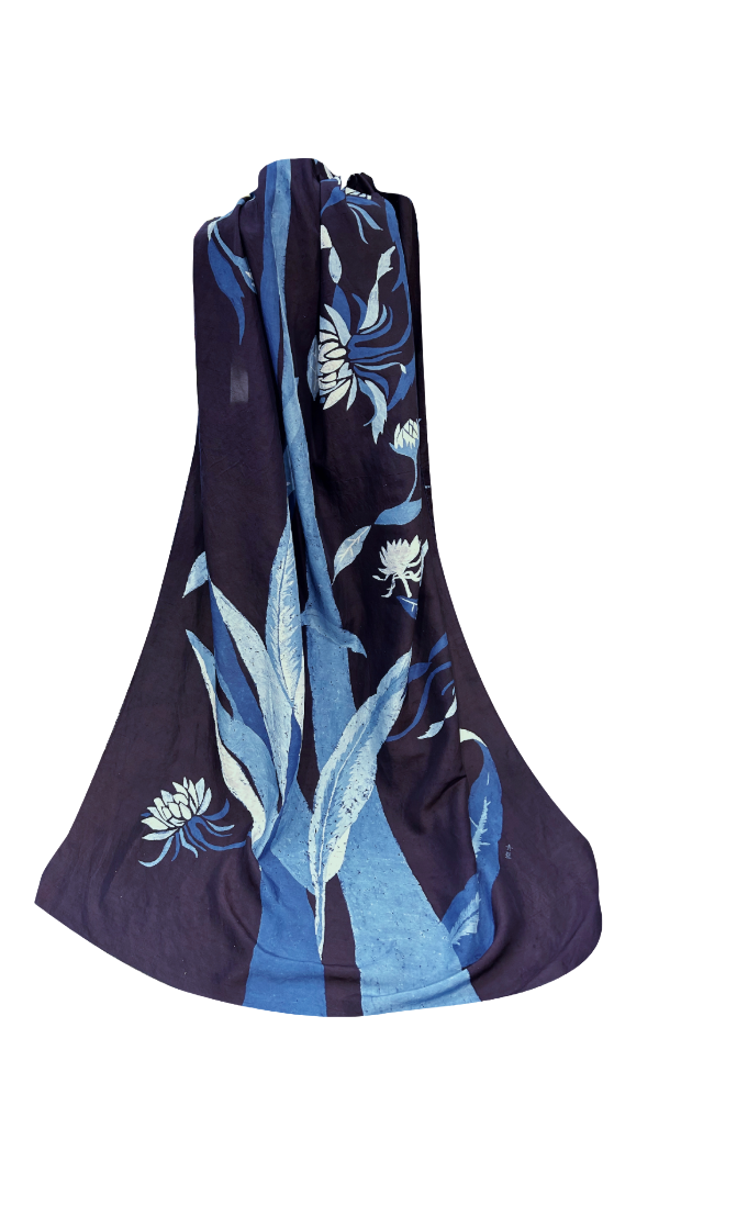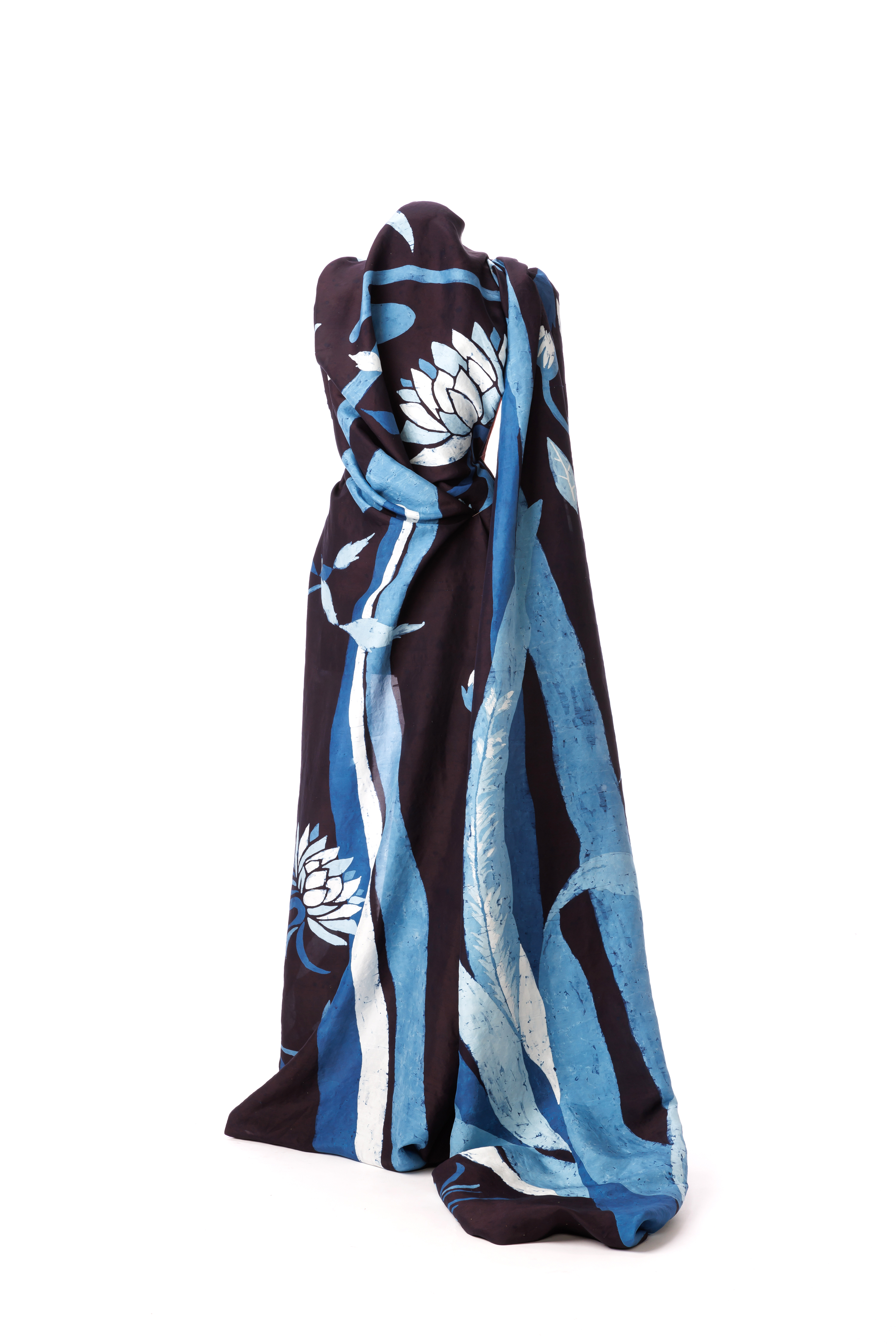 青藍工房は、藍染作家・橋本陽子により1970年に設立されました。 橋本陽子は、化学染料の普及により衰退した藍染を、単なる染色技法としてではなく、「自然・時間・生命の循環」を映し出す芸術表現として再生させることを志し、独自の「藍のろうけつ染」を確立してきました。 徳島で生産される高品質な藍は「阿波藍」と呼ばれ、「ジャパン・ブルー」を象徴する伝統文化として高く評価されています。橋本陽子は50年以上にわたりその可能性を追求し、伝統工芸の枠を超えた芸術として発信し続けています。