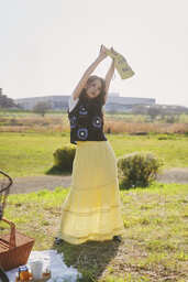 ・TOLIGHT×CITENプリントT:4,950円 ・メッシュニットカーディガン:4,950円 ・ハシゴレース切替スカート:6,930円 ・カラーミックスビーズネックレス:2,200円 |