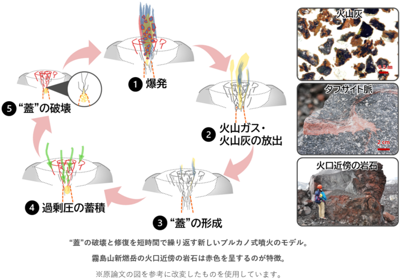 火山の「繰り返し爆発」メカニズムを火口近傍の赤い岩石の成因から解明