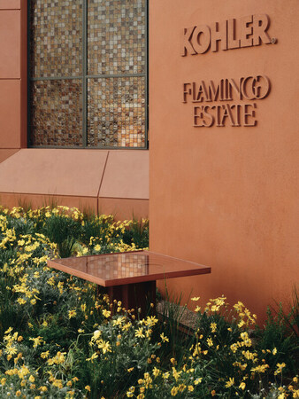 Kohler Co.のVP of Global DesignであるMichael Seumは、次のように述べています。「The Flamingo Estate Bathhouse by Kohlerを通じて、私たちは建築と生態系の関係、そしてデザインが人だけでなく私たちを取り巻く自然界に対するいたわりの瞬間をどのように生み出せるかを探求したいと考えました。ポリネーター・バスは、この考えを彫刻的な形にしたもので、外側にはブルータリズムの原理を取り入れつつ、内側は自然に着想を得た有機的な表面へとやわらかく移り変わります。これは、デザインは人の儀式性と環境保全の双方を受け止める場を持つべきだという、私たちの信念を映し出すものです。」